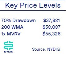 One key takeaway from the “Bitcoin Cycles” chart above is that each successive cyclical drawdown has been shallower than the last. While the ultimate depth is uncertain, a drawdown of roughly 70% appears reasonable based on historical progression.