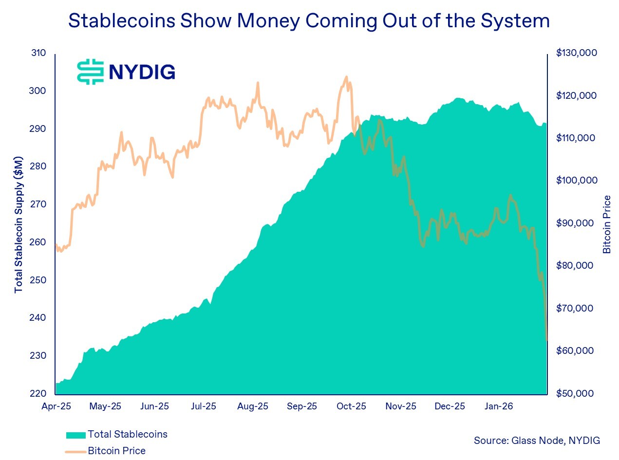 Unlike bitcoin ETFs, capital continued to enter the ecosystem through stablecoins following the October 10th liquidation event. While the liquidation briefly reversed inflows, capital quickly returned and persisted through the end of December. That momentum later began to roll over, signaling that some investors were cashing out and exiting. However, that trend appears to have paused about a week ago, with stablecoin supply stabilizing since then and remaining largely unaffected by the recent price decline.