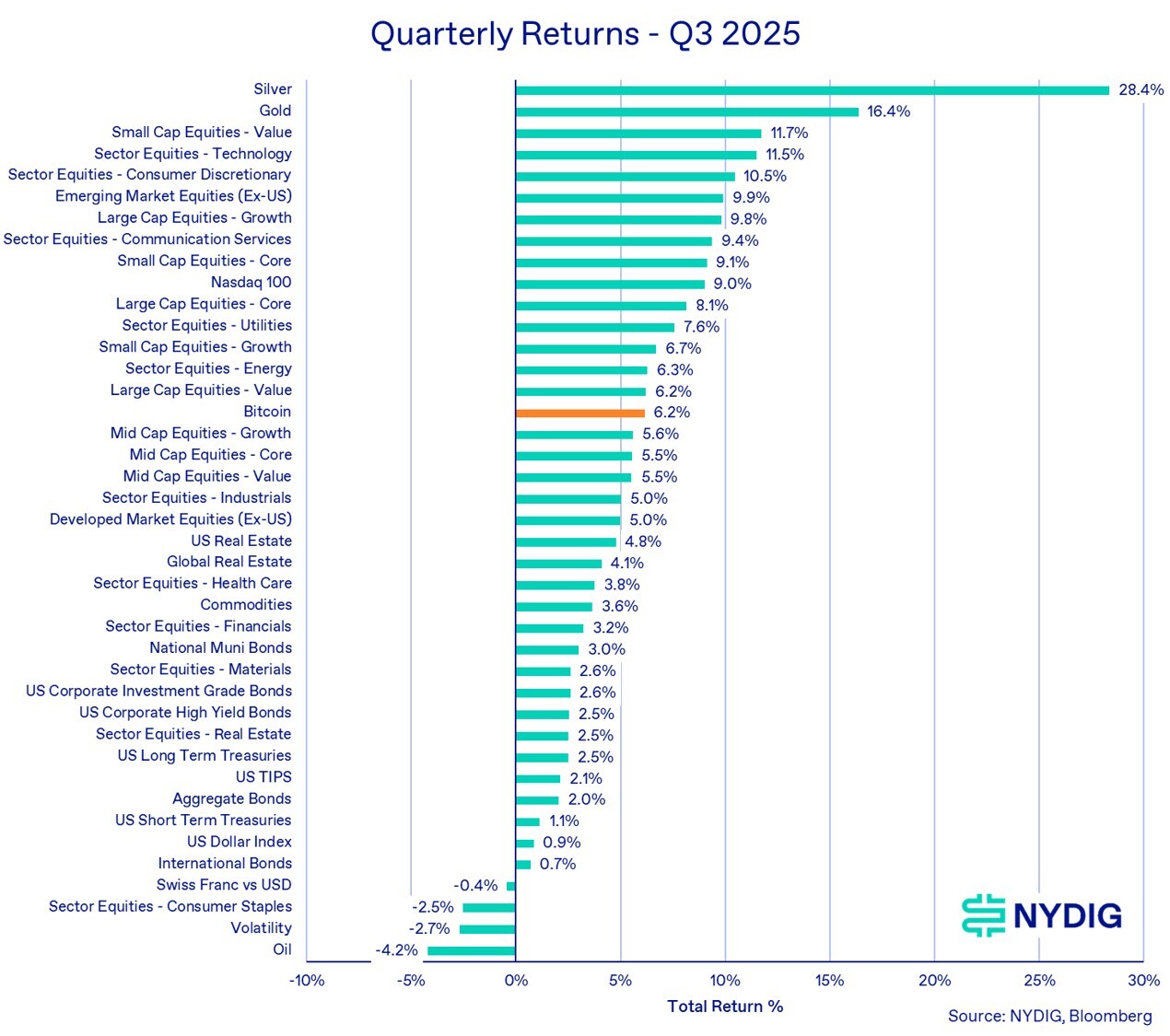 The major macro development this quarter was the FOMC’s 25-basis-point rate cut in mid-September, its first reduction since late 2024. While widely anticipated by markets, the move underscored the Fed’s challenging balancing act. Chair Powell emphasized the committee’s careful navigation between a softening labor market and persistently firm inflation, noting that the full effects of recently implemented tariffs have yet to be fully assessed.