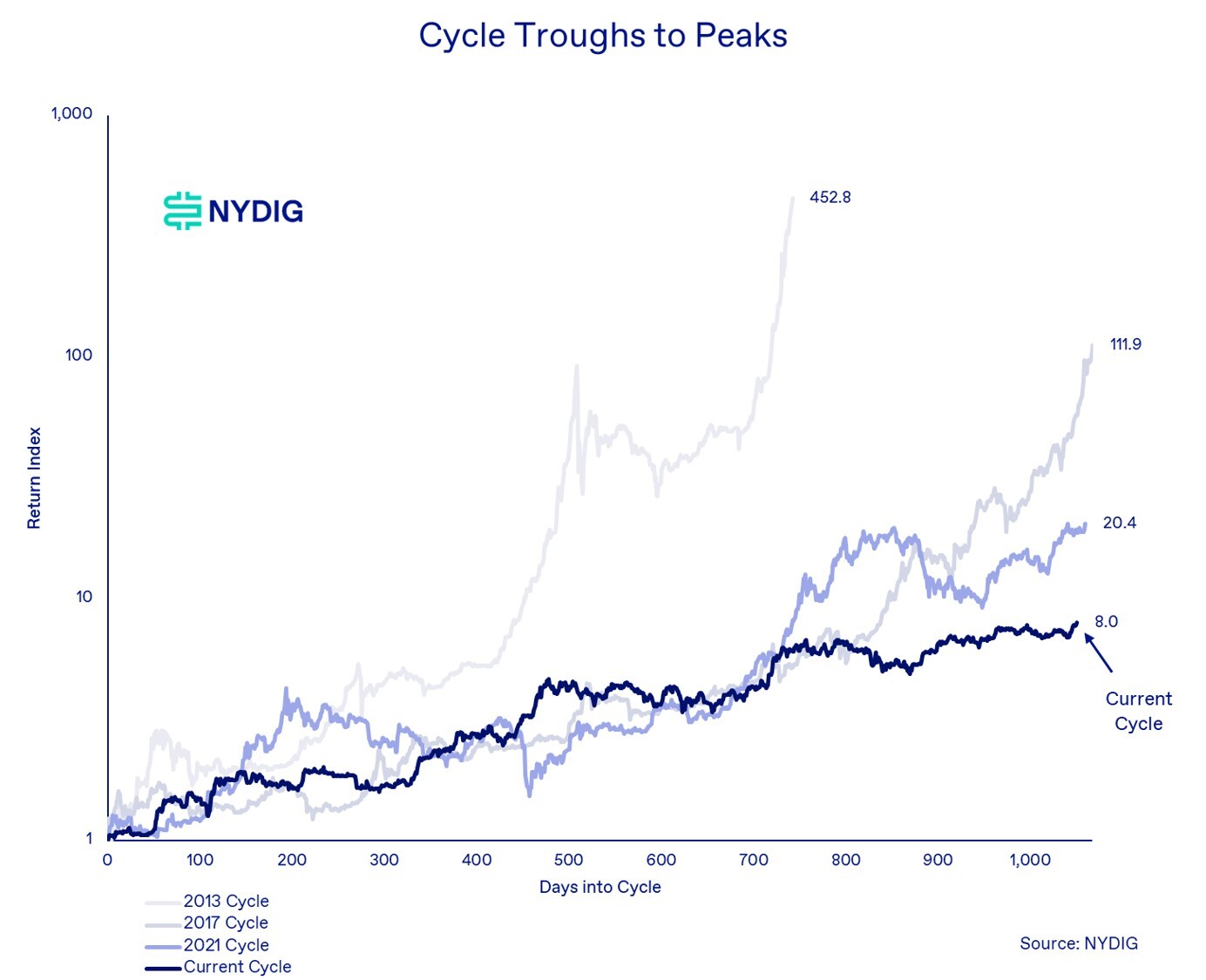 The mempool remains largely empty following the inscriptions boom, with target transaction fees at just 1–2 sat/vB. Transaction fees now make up less than 1% of miner revenue, compared with spikes above 50% (for certain blocks) during the inscriptions craze, as the 3.125 BTC block subsidy continues to dominate miner earnings. Meanwhile, daily active addresses are flat to declining.